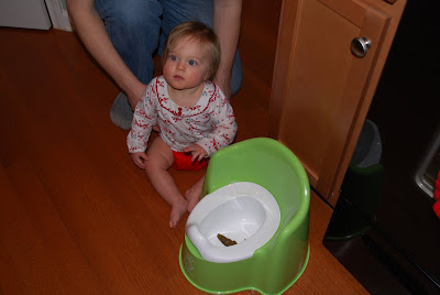 Hoping it wasn't a fluke, we tried again today...... and she peed in her potty 4 different times! Now we know she isn't potty trained yet or anything, but she definitely knows what a potty is for and is willing to use it. Each time we sit her down on it, we give her the sign for 'potty' in hopes that she will eventually be able to tell us when she needs to go. Babies are absolutely incredible!